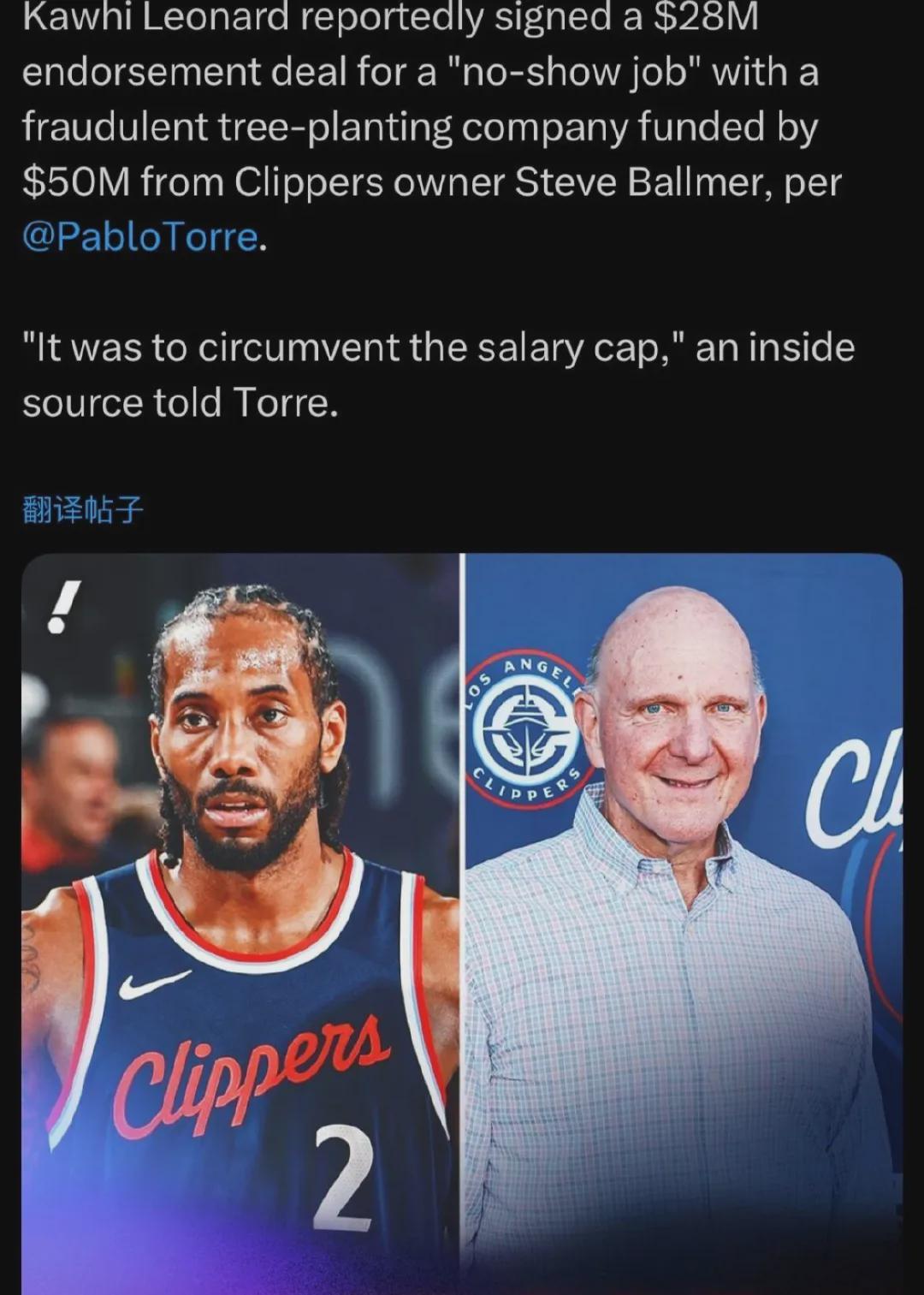确实是炸了,据TA的记者Pablo Torre报道,快船这边出大问题了,伦纳德和球队老板鲍尔默之间,可能存在阴阳合同。